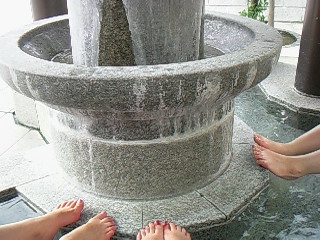 足湯でまったりしちょります。